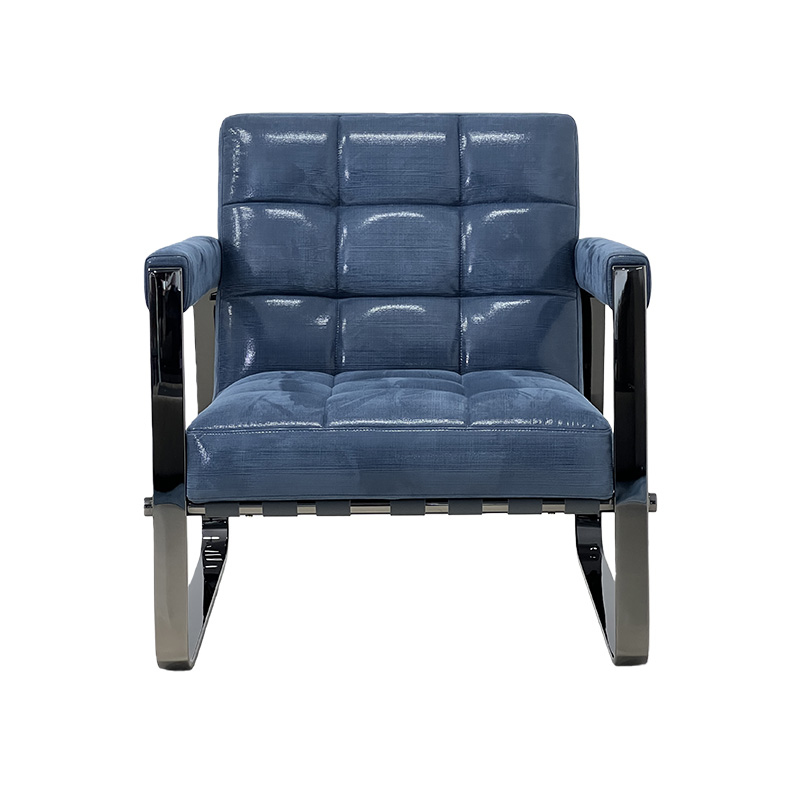 A statement luxury accent lounge chair designed for high-end homes and hospitality spaces. Featuring rich jewel-blue upholstery with plush tufted cushioning, this chair offers a comfortable, supportive sit while delivering strong visual impact. The sleek high-gloss black frame and armrests add a modern luxury edge, making it an ideal designer accent chair for villas, penthouses, show flats, hotel lobbies and executive lounges.
