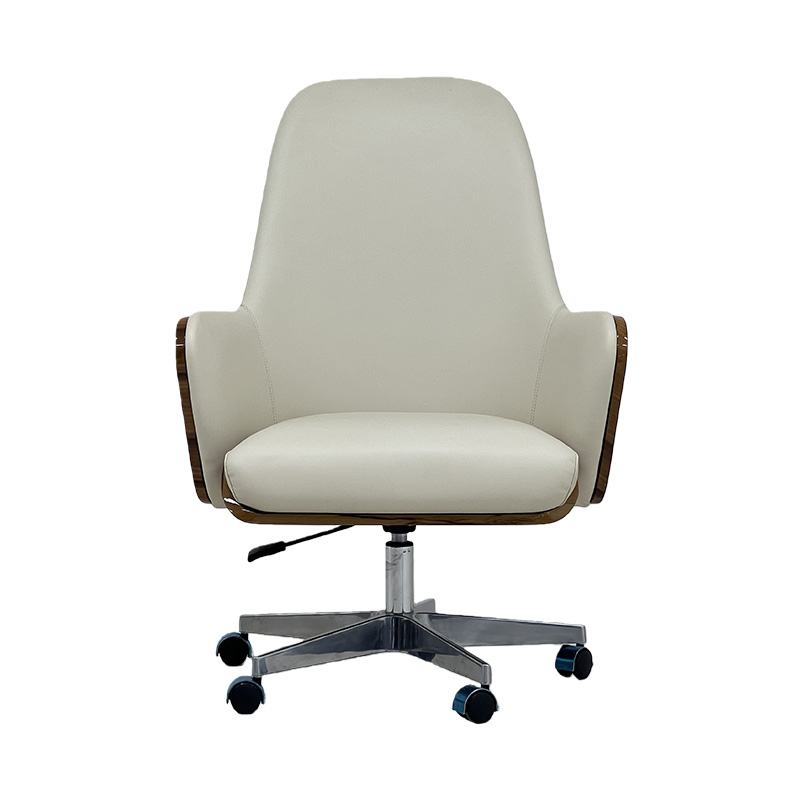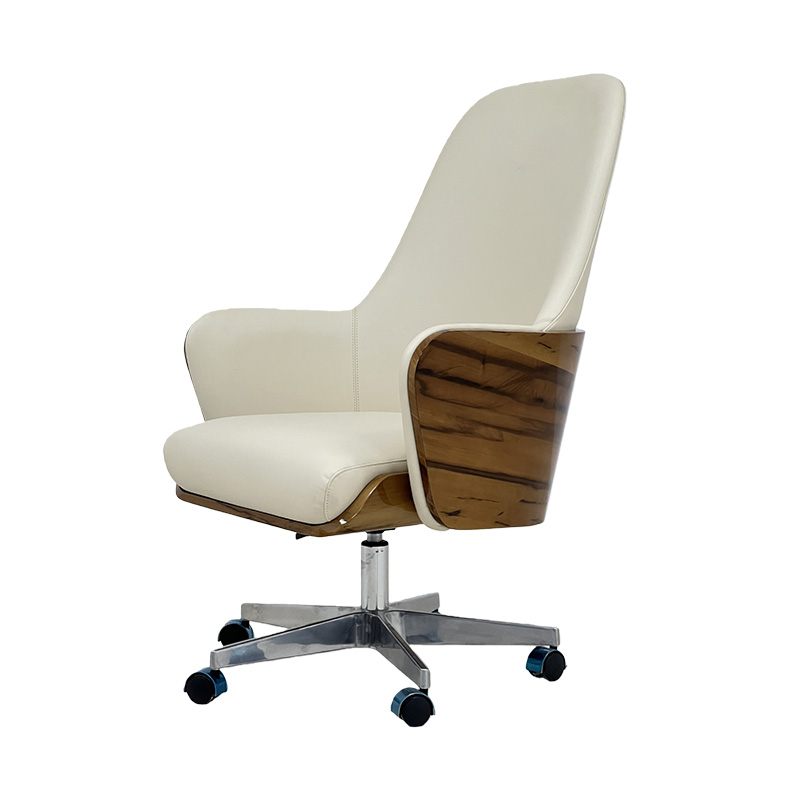 A refined luxury executive office chair designed for high-end home offices and CEO suites. Upholstered in elegant ivory leather (or premium leatherette) with a warm wood-trim detail and a polished metal 5-star base, it delivers an Italian-inspired modern luxury look. Featuring 360° swivel, height adjustment and smooth casters, it’s ideal as a CEO desk chair, conference chair or home office chair for villas, penthouses and executive workspaces.