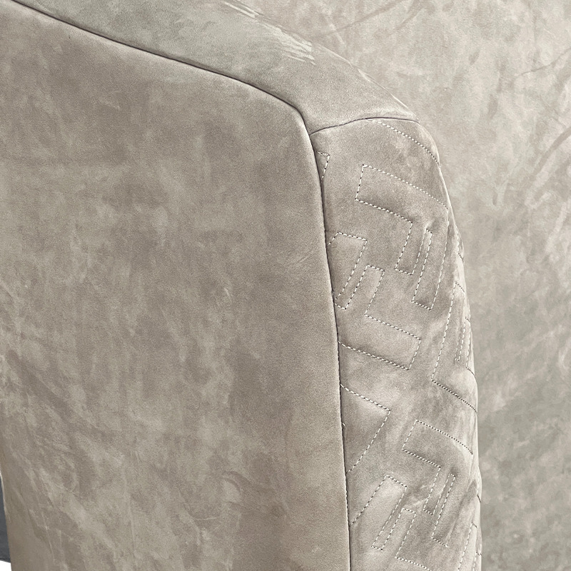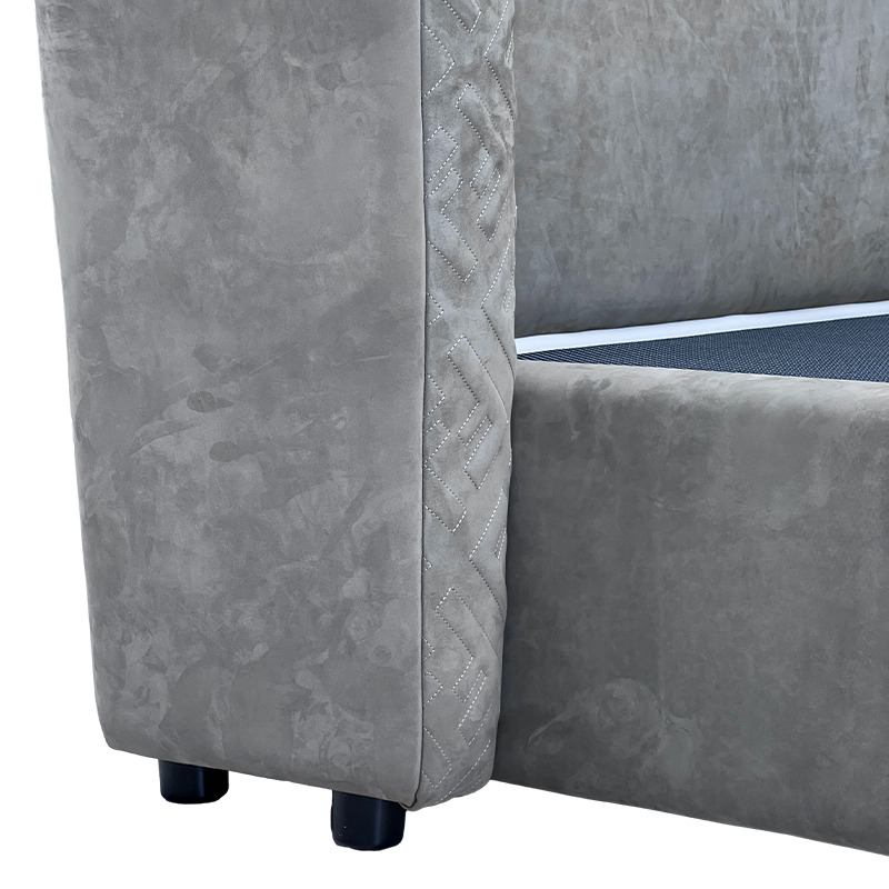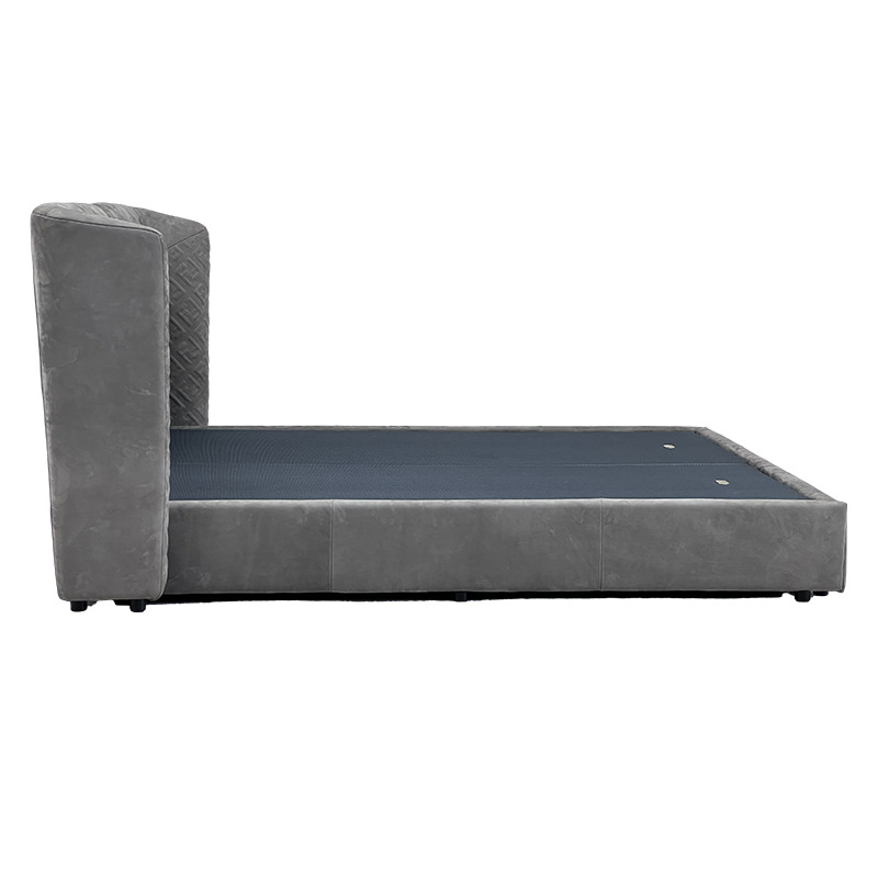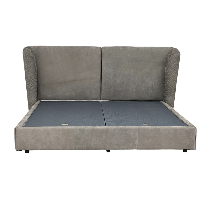 This modern wave custom bed features a smooth wave shaped headboard design, combined with high-quality fabric and gold borders, showcasing the perfect fusion of simplicity and high-end. There are practical sockets designed on both sides for easy charging and enhancing the convenience of the bedroom. The bed structure is stable, providing a comfortable sleeping experience and suitable for various modern bedroom styles. This bed can be customized according to customer needs to meet different space and design requirements.
