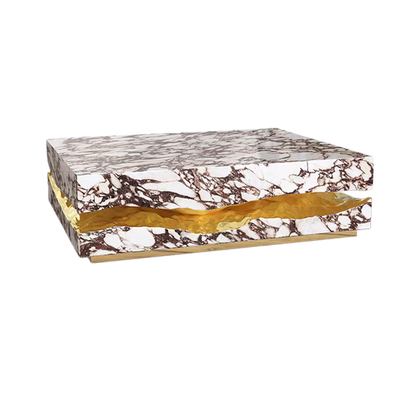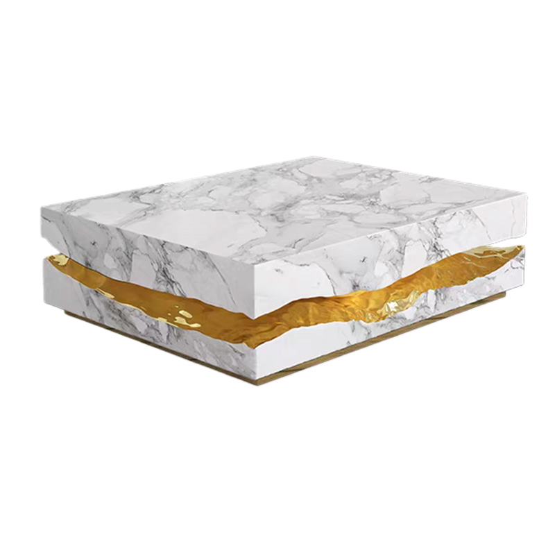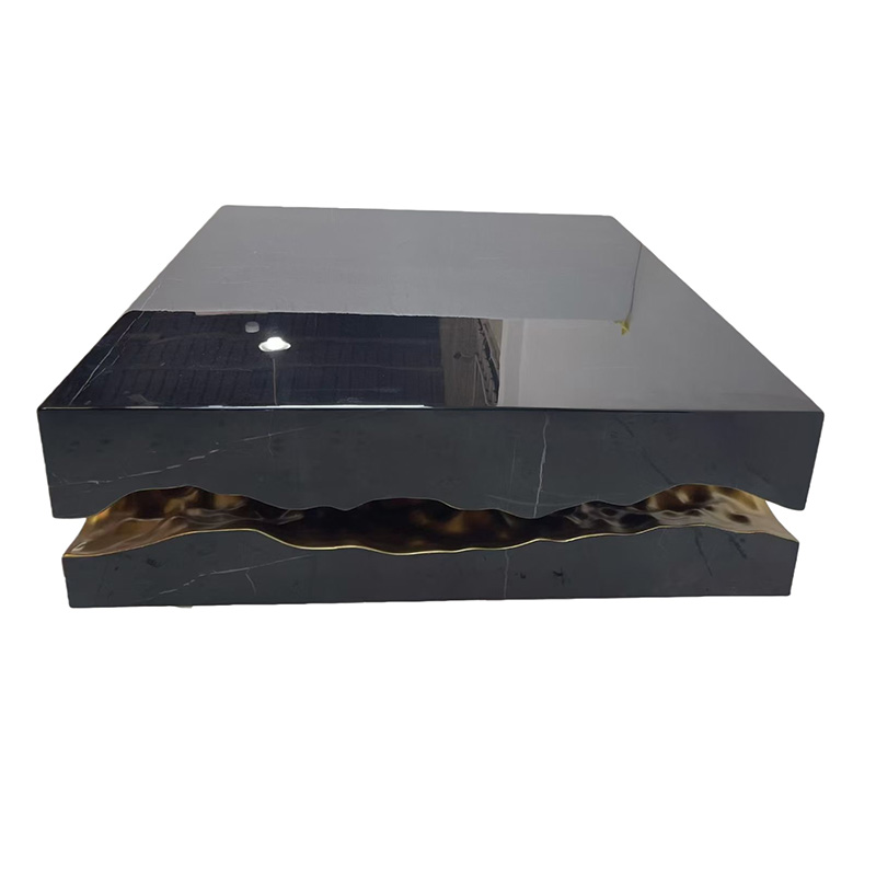 Designed with multi-finish panel options, this modern luxury coffee table allows the tabletop and side panels to showcase different textures and visual characters—ranging from mirror-gloss surfaces to richly grained or patterned finishes—so it can be styled to match a wide spectrum of interiors. The overall form is architectural and clean, with a confident geometric volume that suits modern, luxury, contemporary, and hospitality environments.